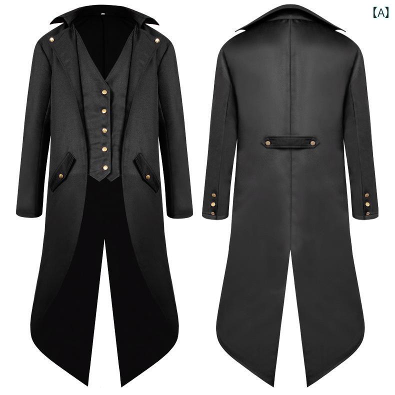 タキシード レトロ 紳士 タキシード 中世 ヨーロッパ メンズ ロング コート バックスリット ケープ ピュア カラー COS 衣装