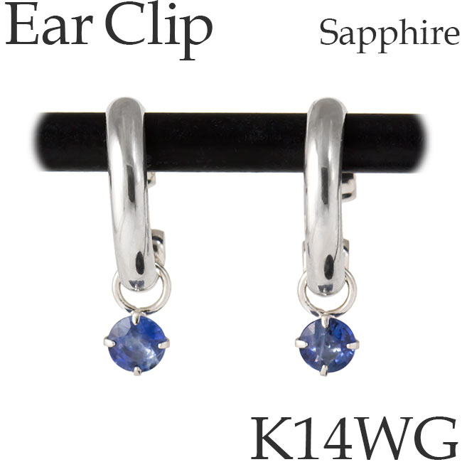 ノンホールピアス イヤリング イヤクリップ 14Kホワイトゴールド サファイア 9月誕生石 イヤーカフ シンプル K14WG 14KWG 14金 日本製 送料無料 [sy]