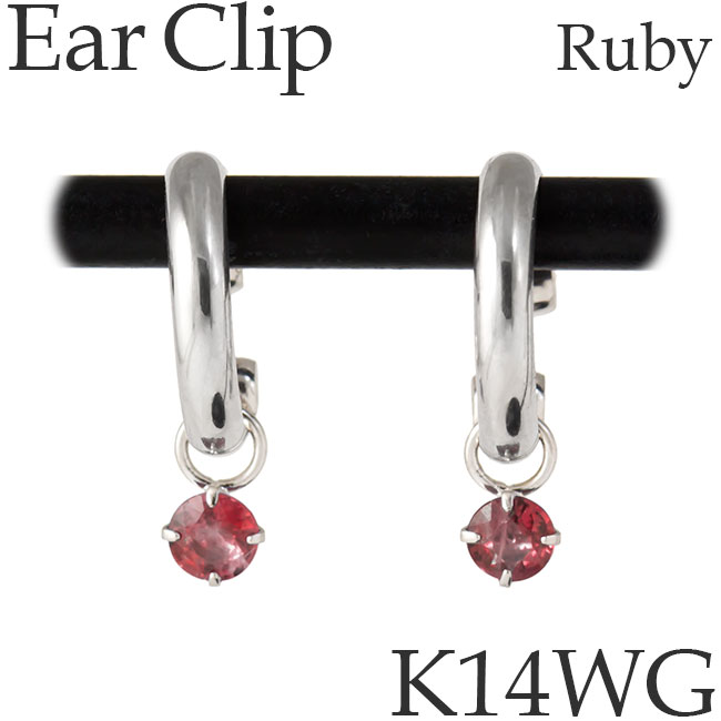 ノンホールピアス イヤリング イヤクリップ 14Kホワイトゴールド ルビー 7月誕生石 イヤーカフ シンプル K14WG 14KWG 14金 日本製 送料無料 [sy]