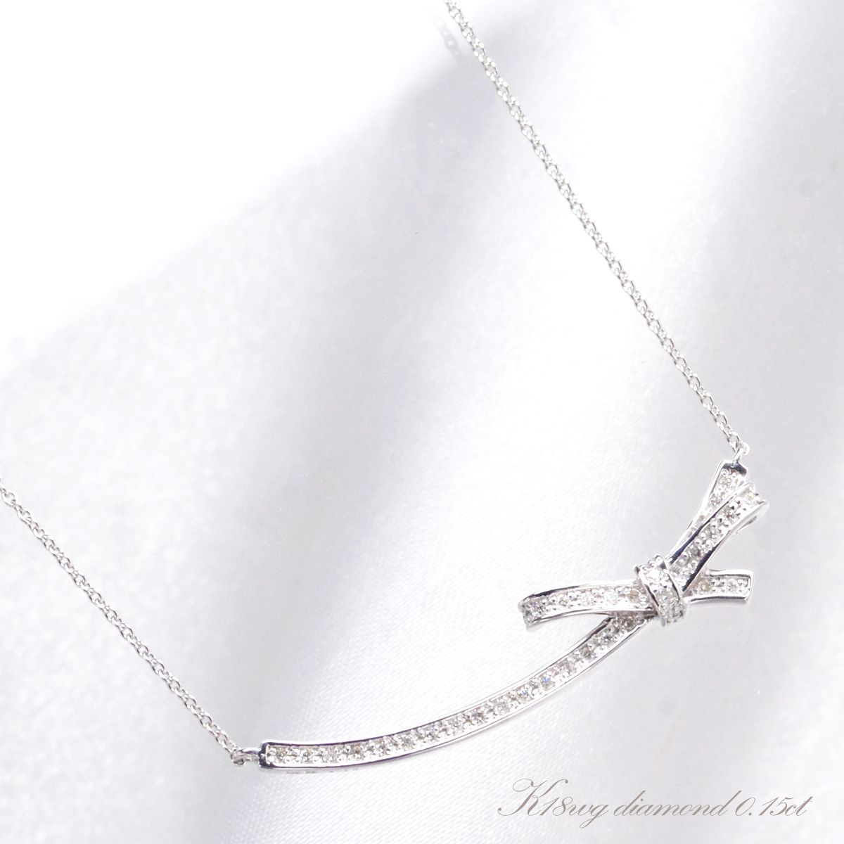 ネックレス レディース K18 18KWG 18金 ホワイトゴールド ダイヤモンド リボンネックレス 日本製 刻印入り 鑑別書付き【人気アイテム】