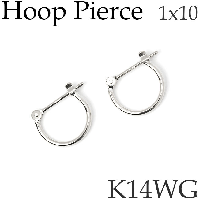 [両耳用] 2個 [片耳用] 1個 フープピアス K14ホワイトゴールド プラチナ900 地金 太さ1mm パイプ 直径10mm G型 遮断式 リングピアス フープ 14金 K14WG 14KWG Pt900 日本製 [ma][2024-05]