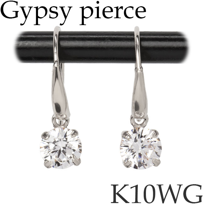 フックピアス キュービックジルコニア 4mm ラウンドカット ジプシー K10ホワイトゴールド 10金 K10WG 10KWG 日本製 送料無料 [ma][gyp3232]