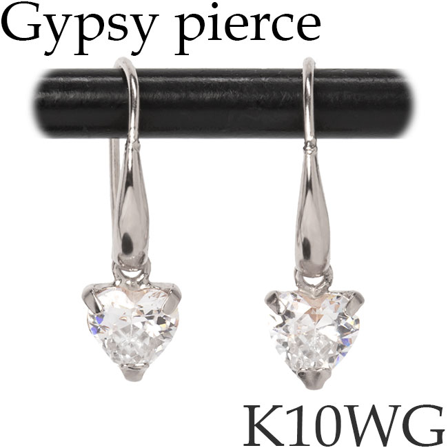 フックピアス キュービックジルコニア 4x4mm ハートシェイプカット ジプシー K10ホワイトゴールド 10金 K10WG 10KWG 日本製 送料無料 [ma][gyp3232]