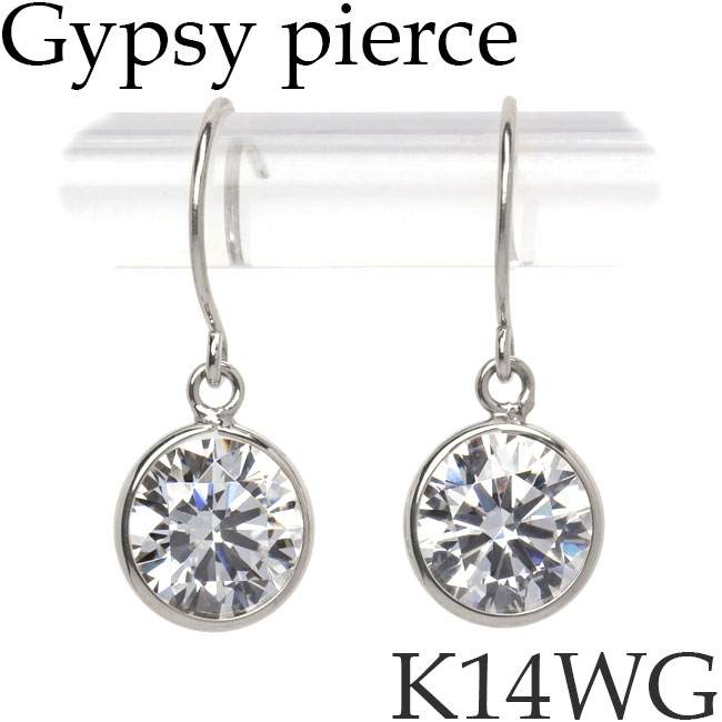 ピアス フックピアス 一粒 スーパーキュービック 14Kホワイトゴールド レディース ジプシー 14金 K14WG 14KWG 日本製 [sy]