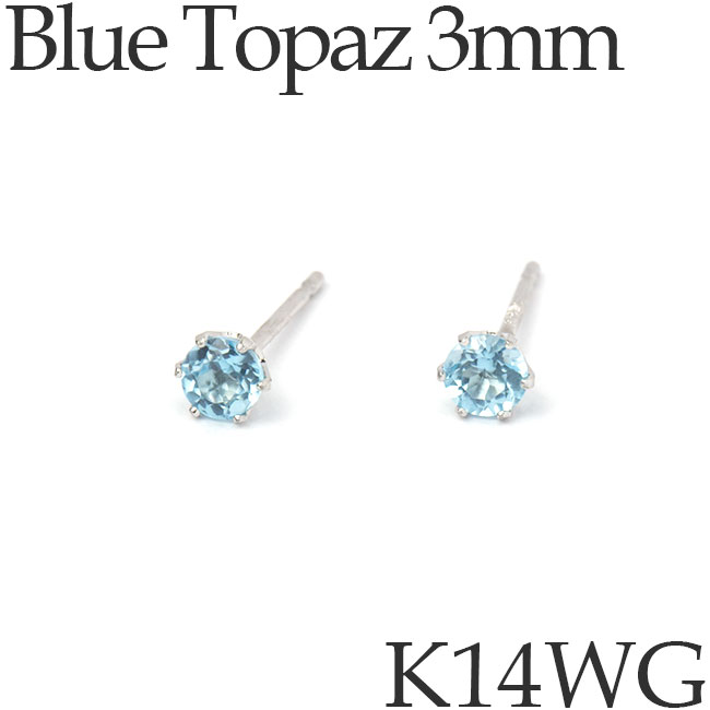 ピアス 6本爪 スタッドピアス ブルートパーズ 3mm 14Kホワイトゴールド 11月誕生石 一粒ピアス シンプル K14WG 14KWG 14金 日本製 [sy]