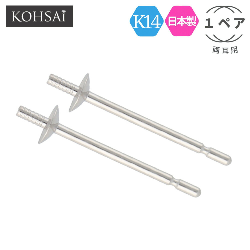 【本日23:59まで!お得なCP配布中】お買得【ペア販売 2個】 ピアスポスト ピアスパーツ ストレートポスト 直結タイプ 2.5mm皿 φ0.65mm パール スタッド ピアス パーツ K14 14KWG 14金 刻印入 日本製 ニッケルフリー アクセサリーパーツ ツキサシ 芯立 皿付き