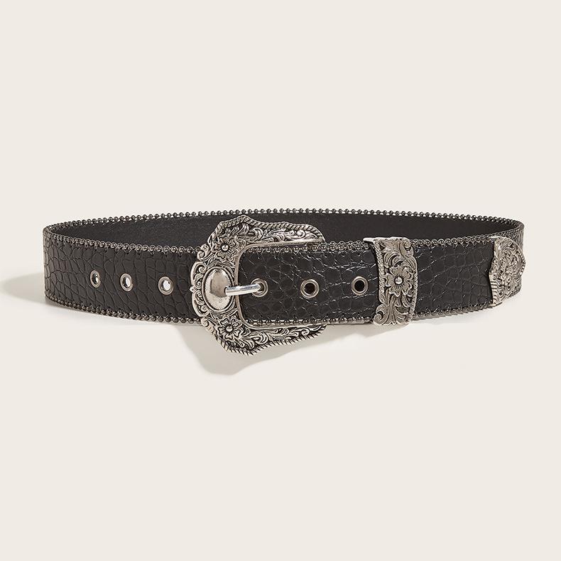 ベルト レディース ブラック アメリカンヴィンテージ風 装飾 バックル 個性 スカート パンツ アクセント