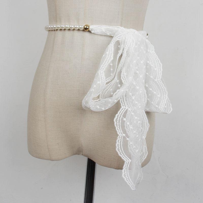 ベルト ウエストチェーン レディース 上品 エレガント ビーズ レース かわいい 韓国ファッション 細身 ロング 多機能 万能 着回し ファッション小物 白 春夏(x2)