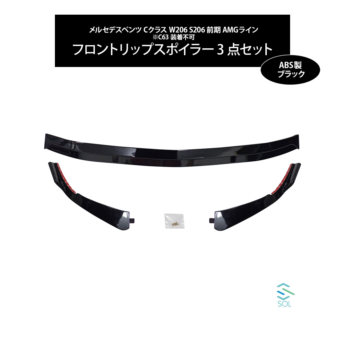 ベンツ Cクラス W206 S206 前期 AMGライン用 フロントリップスポイラー スプリッター 3点セット ブラック