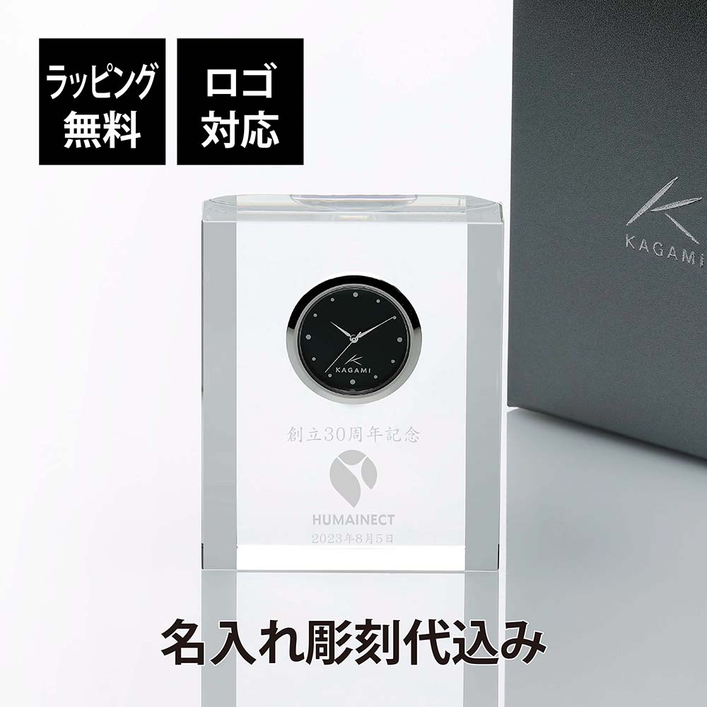 【ラッピング無料】【ロゴ対応】【名入れ代込み】KAGAMI カガミクリスタル オプティカルクロック Q424記念品 受賞記念 プレゼント お祝い 名前 刻印 トロフィー ホールインワン カガミクリスタル 法人記念品 永年勤続 時計 クリスタル 光学ガラス 卓上サイズ