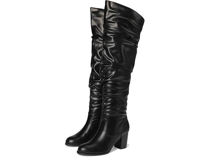 ジャーニーコレクション レディース ブーツ シューズ Women's Kaison Extra Wide Calf Stacked Heel Over The Knee Boots Black Polyurethane