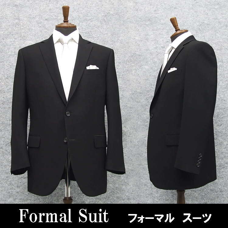 大きいサイズ 礼服 春夏物 シングル 2釦ベーシックフォーマルスーツ ノータック 超黒 kaj930-big