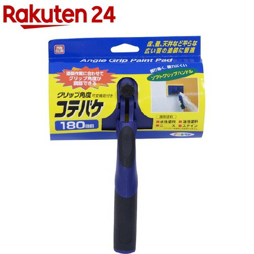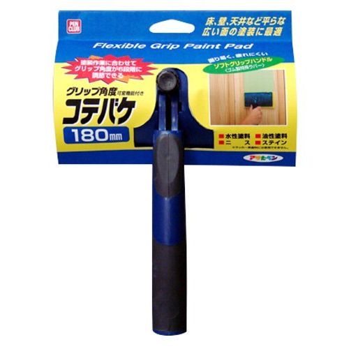 特徴グリップハンドルを塗り易い角度に固定できる塗装場所に合わせてグリップハンドルの角度が自由に調節できるコテバケ。床、壁、天井など平らな広い面の塗装に最適。仕様サイズ:180mm最適な塗料:水性塗料・油性塗料材質本体:ポリプロピレン、ナイロン、TPEパッド毛部:ナイロン繊維パッドスポンジ部:ポリウレタンフォームパッド樹脂部:塩化ビニル※グリップのラバー部はシンナーで洗浄しないでください。※部材が変形・溶解しますのでラッカー系塗料の塗装やラッカーうすめ液での洗浄はしないでください。※パッドの取りはずし、または取りつけの際は、プラスチックの角でケガをしないよう、充分注意して取扱ってください。※掲載製品は、予告なく製品の仕様・デザイン等を変更することがありますので、ご了承ください。メーカーからの取寄せ商品のため、ご注文後のキャンセル、返品、交換はできません。万一、メーカーでの欠品や廃番により商品をご用意できない場合はご連絡いたします。