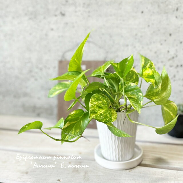 観葉植物【ハブカズラ属】ポトス ゴールデン3.5号陶器鉢(KAJ3-A-115)(皿付)