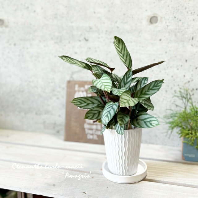 観葉植物【クテナンテ属】クテナンセ・セトサ3.5号陶器鉢(KAJ3-A-115)(皿付)