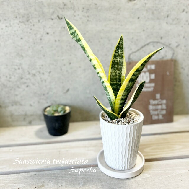 観葉植物【サンセヴィエリア属】サンスベリア・スーパーバー3.5号陶器鉢(KAJ3-A-115)(皿付)