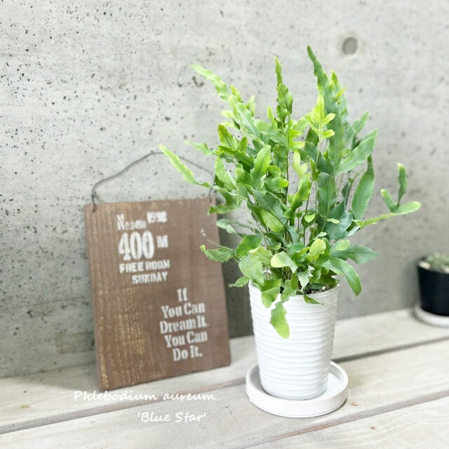 観葉植物【フレボディウム属】アウレウムブルースター3.5号陶器鉢(KAJ3-B-115)(皿付)