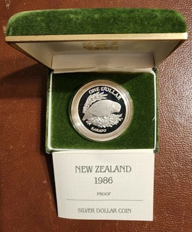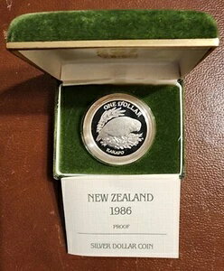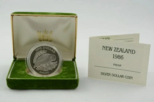 1986 ニュージーランド プルーフ シルバー ドル カカポ