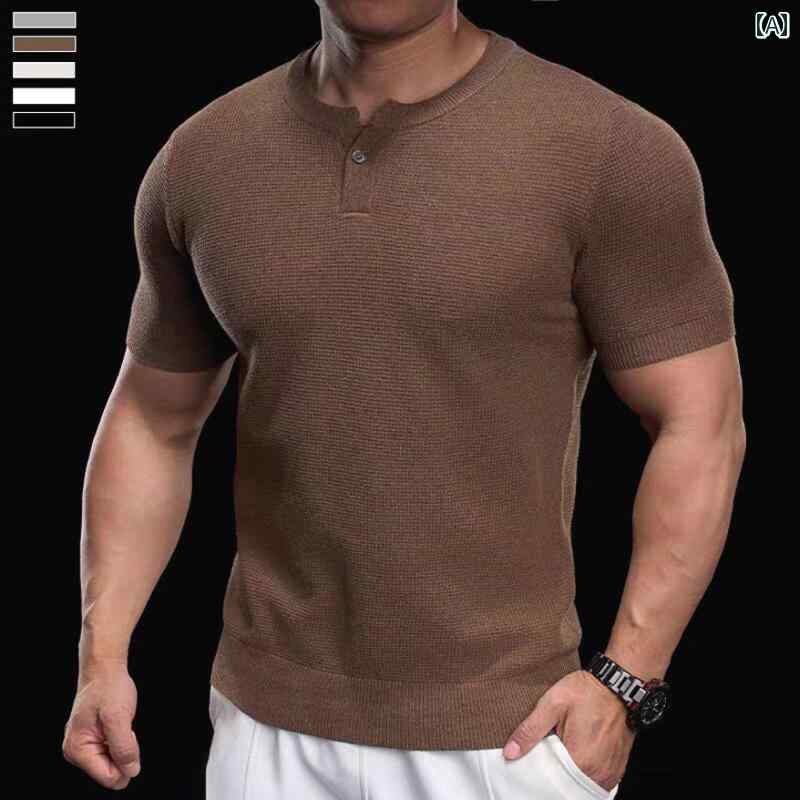 シャツ トップス アメリカ カジュアル メンズ 無地 シンプル クラシック 日常使い スタイリッシュ タイトフィット 半袖 ヘンリーカラー Tシャツ