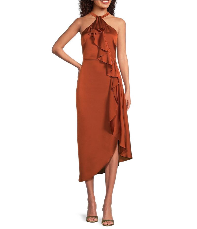 バッジェリーミシュカ レディース トップス ワンピース アシンメトリー ミディワンピース ミディ サテン ホルター Badgley Mischka Kelly Satin Halter Asymmetrical Hem Slip Midi Dress Copper