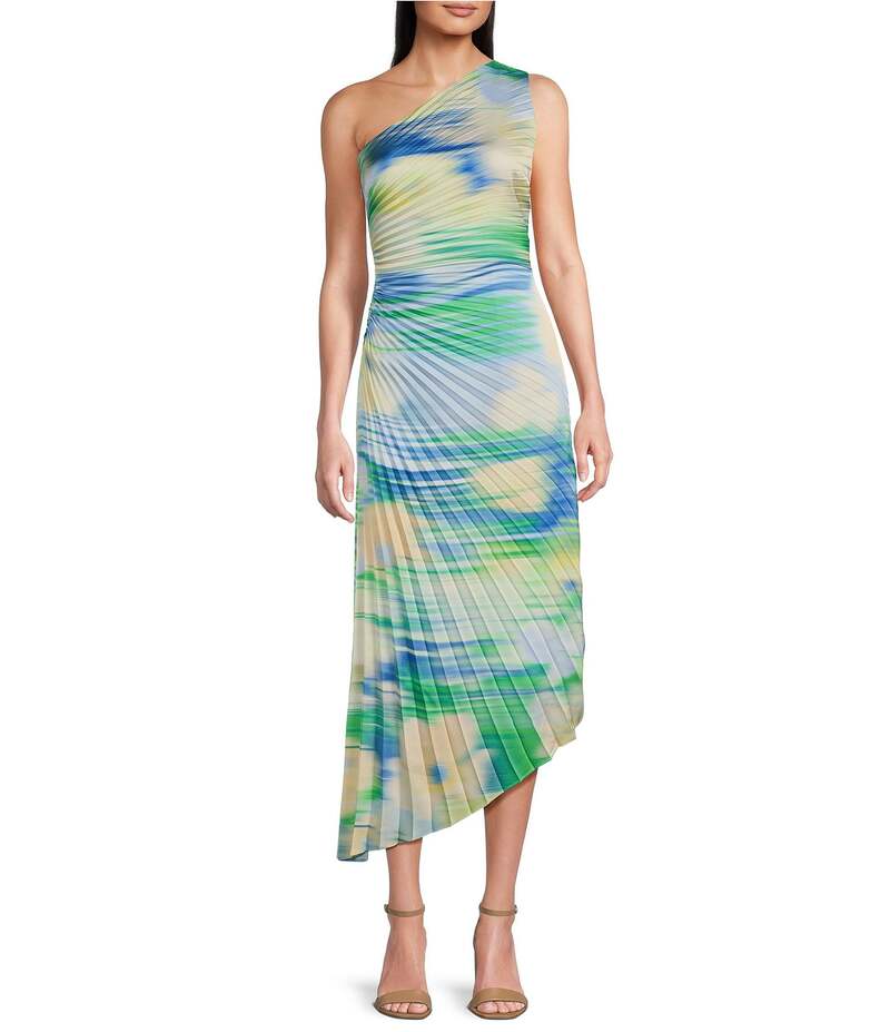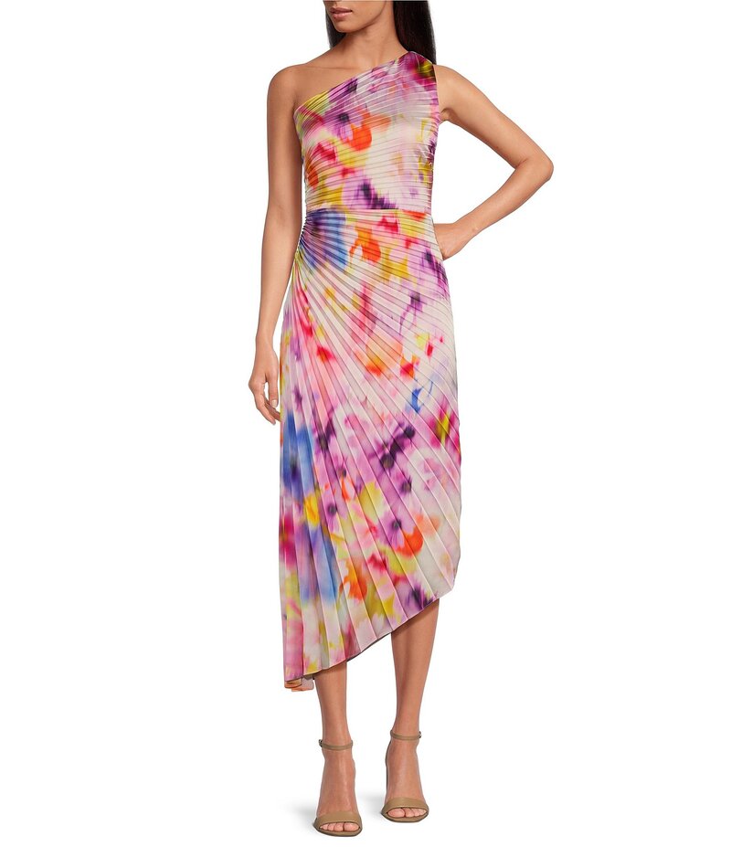 バッジェリーミシュカ レディース トップス ワンピース A ライン アシンメトリー プリーツ ワンショルダー Belle by Badgley Mischka Kelsey Asymmetrical One-Shoulder Pleated A-Line Dress Pink Multi ピンク