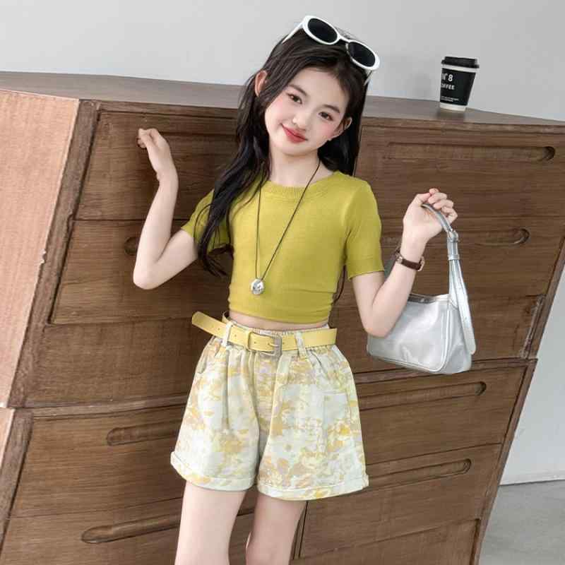 ・カテゴリ: 子供服セットアップ・性別: 女の子用・スタイル: 韓国・セットタイプ: パンツセット・セット点数: 2点セット・主な素材: 綿90%・厚さ: 薄手・袖丈: 半袖・パンツ丈: ショート・柄: プリント・生地加工: 柔軟加工・留め具: プルオーバー・対象年齢層: 8歳以上(140cm以上)・カラー展開: イエロー・サイズ展開(身長): 120cm, 130cm, 140cm, 150cm, 160cm, 170cm