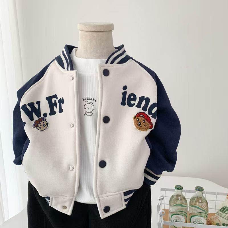 子供服 ジャケット キッズ 男の子 春秋 野球 厚手 クマ柄 アウター トップス 韓国風 ブルー コットン 80cm 90cm 100cm 110cm 120cm 130cm 140cm