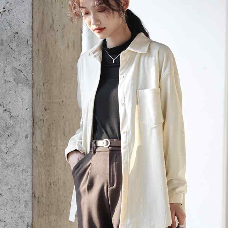 シャツ レディース 厚手 コーデュロイ 長袖 秋冬 韓国風 ゆったり 無地 トップス アウター 米白色 緑色 焦糖色 普段使い