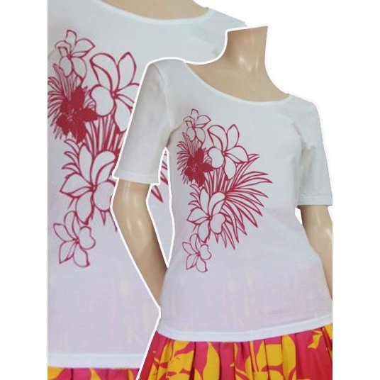 Kapaliliオリジナルゆったりタイプ ドルマン半袖Tシャツ フラガール柄 ホワイト KOT159