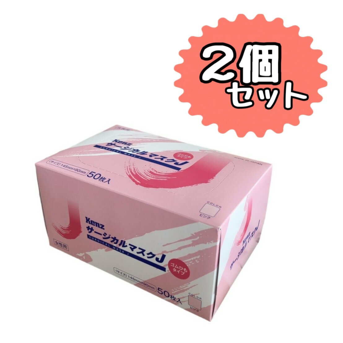 Kenz サージカルマスク J 50枚 【日本製】 (女性用ピンク) 2個セット 使い捨て 不織布※※追跡番号をつけて発送いたします※※