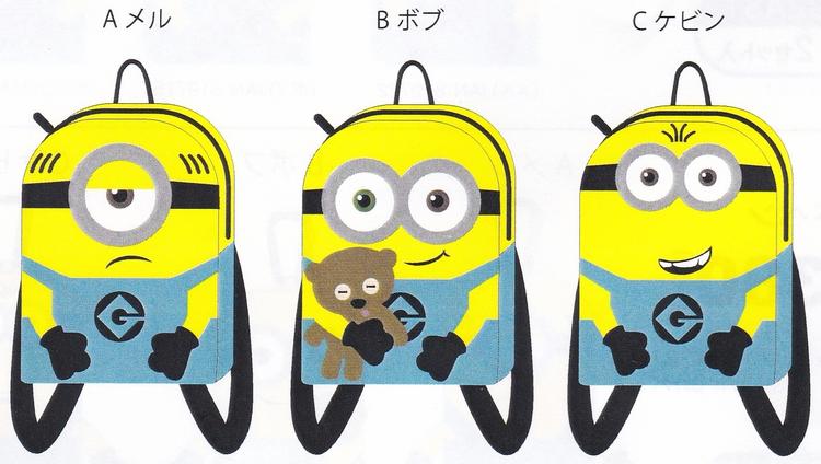 ★□●在庫処分!サービス特価!ミニオンズ/リュック/A.メル(K-2496A)/B.ボブ(K-2496B)/C.ケビン(K-2496C)/アイプランニング(takuhai)