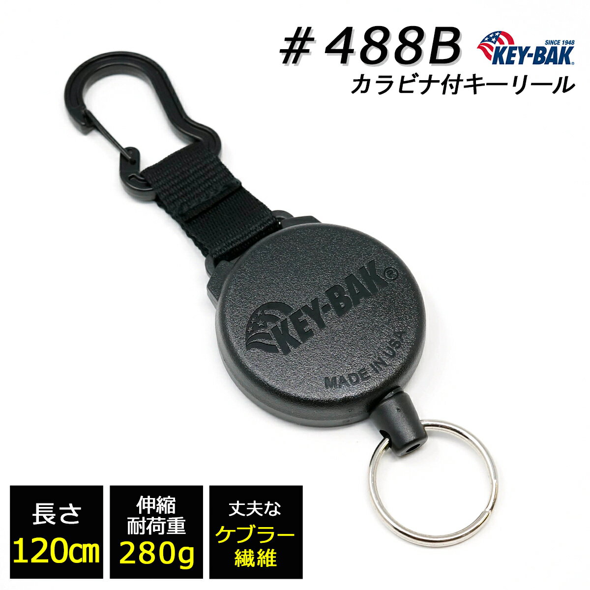 【ポイントアップ中】 KEY-BAK カラビナ リール キーホルダー 120cmケブラー 【KEYBAK 正規代理店 品質1年保証付】 rsl