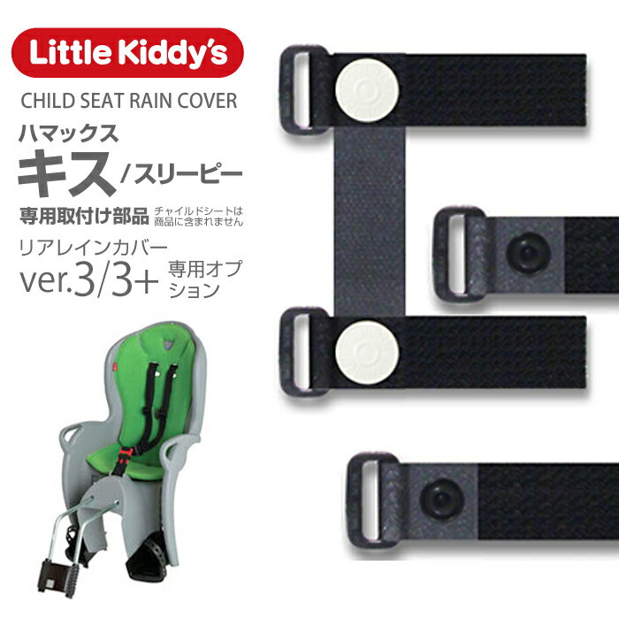 【メール便に関する注意点】 メール便では日時指定はご指定いただけません。 発送からおよそ2〜5日程度で、普通郵便のように郵便受けに投函されます。 転居等による住所不備による転送は行われない場合がございます。送付先の誤りによる不配達につきましては当店では対応を致しかねますので予めご了承下さい。住所不備等で商品が返送された場合は、往復の送料および弊社所定の手数料をご請求致しますので十分にご注意下さい。 ご自宅のポストの投函口が小さい(最大A4サイズ厚み3cmの箱が入らない)場合はお客様へ直接お渡しします。ご不在の場合は不在通知を投函し配達支店での保管となります。長期ご不在で商品が返送された場合は、往復の送料および弊社所定の手数料をご請求致しますので十分にご注意下さい。 ご心配な方は宅急便での配送をお選び下さい。ハマックス/キス(スリーピー)専用取付部品セット ハマックス/キス(スリーピー)専用の取付部品セットです。 リトルキディーズの旧型リアレインカバーVar.3およびver.3+を上記チャイルドシートに装着する際に必要となる部品です。 ver.2.2以前やver.3+sレインカバーとの互換性とは互換性がありません。