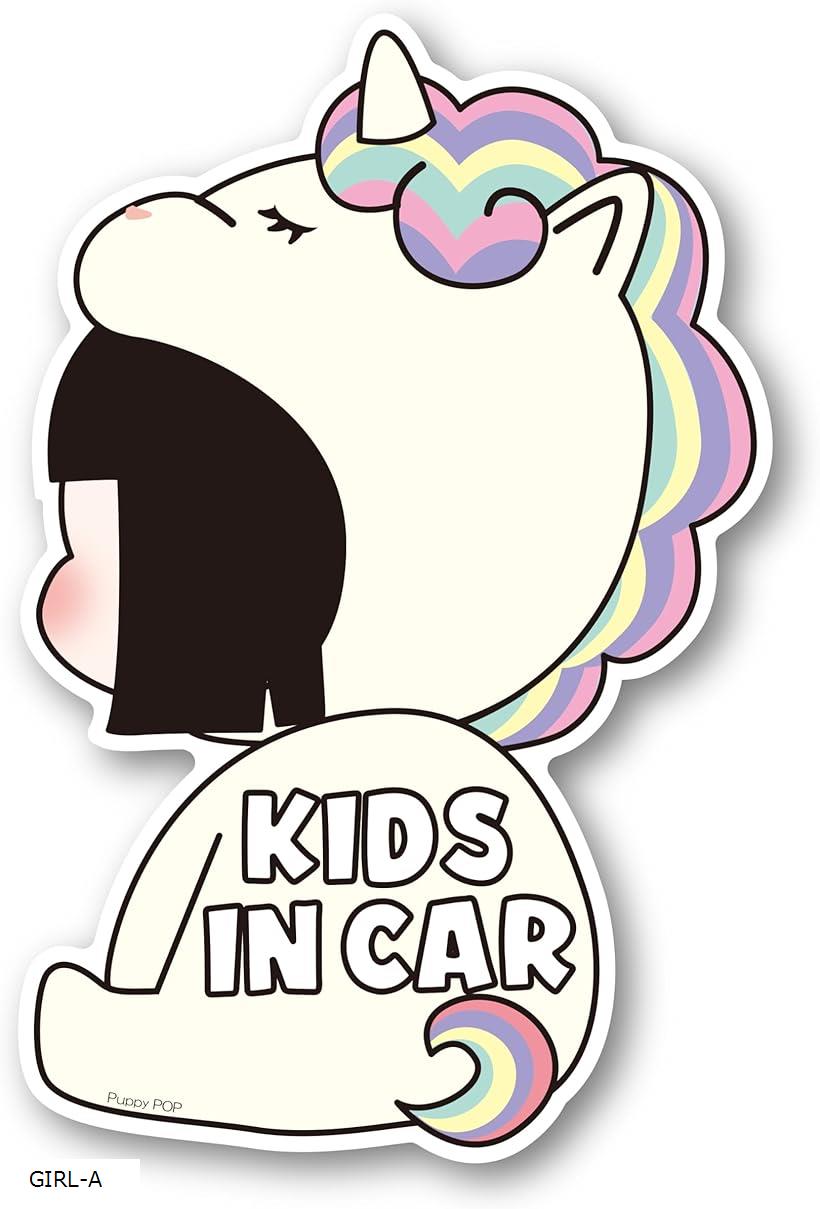 カーマグネットステッカー KIDS IN CAR キッズインカー 子供が乗っています ON BOARD キッズオンボード カー用品KIDDY POP (GIRL-A, バリエーションによる)