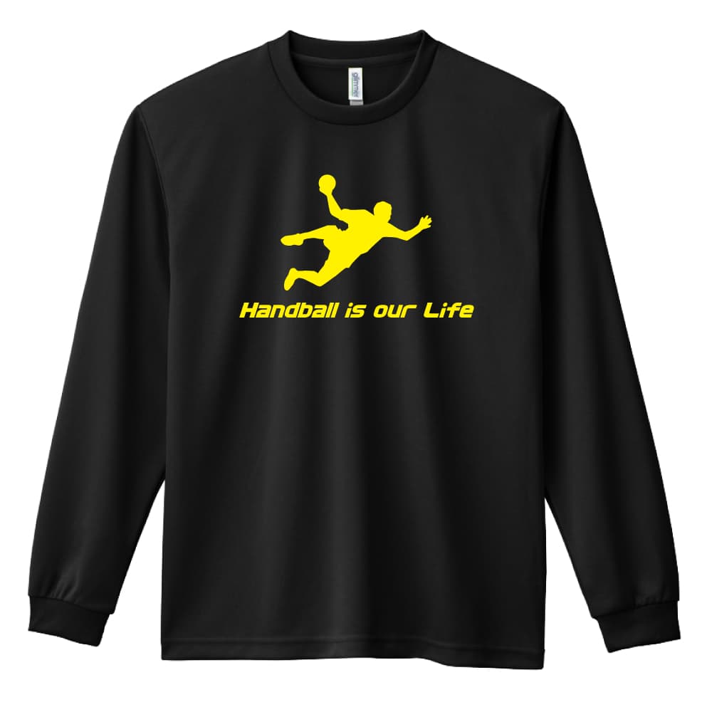 \10%OFFクーポン/ ハンドボール ロンT 長袖Tシャツ メンズ レディース ジュニア 練習着 ドライ おもしろ tシャツ ふざけ 名入れ おしゃれ キッズ 文字入れ無料 「Handball is our Life シュート」 アートワークスコウベ 【送料無料】