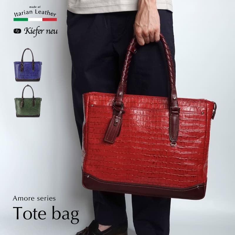 トートバッグ Kiefer neu【キーファーノイ】 牛革 Amore series アモーレ 直営店 送料無料 kfn2212a 人気 父の日 プレゼント レッド ネイビー グリーン