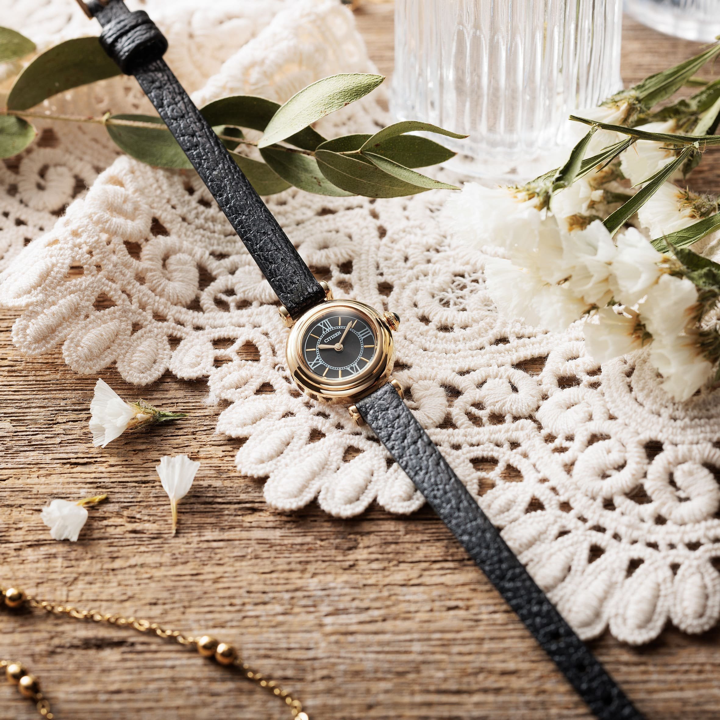 Kii: それは、未来の扉をひらく鍵(キー)。 華奢でありながら、凛とした佇まい。 アンティークな雰囲気とスマートな機能性を合わせもつ、シチズン Kii:。 アクセサリーのような繊細なデザインの中に、 光で発電する極小の「エコ・ドライブ」を搭載したモデルが登場。 しなやかに自分を表現しながら自然の一部であることを忘れない。 Kii: それは、未来の扉をひらく鍵。 あなたの側で、今を刻み続けます。 Kii EG7082-07A Kii EG7083-04W ブランド名 シチズン Kii:(シチズンキー) ムーブメント エコ・ドライブ(電波受信機能なし)Cal.G626 精度:±15秒/月 持続時間:フル充電時約8ヶ月可動 素材 ケース:ステンレス(ウォームゴールド色めっき) バンド:カーフ(牛革) 風防 :球面クリスタルガラス サイズ ケース:横幅 18.4mm / 厚み 6.8mm バンド幅:7.0mm 重量 -g 防水性 日常生活用防水 その他特徴 時刻合わせ告知機能 充電警告機能 過充電防止機能 サイズ調整について バンドサイズはお客様自身で調整できます。 保証期間 3年間メーカー保証(MY CITIZEN ご登録により5年間) お買い上げの時計が、取り扱い説明書に沿った正常な使用状態で 故障した場合、取り扱い説明書の記載内容の範囲で、 保証期間に限り、無償修理致します。 返品 お客様のご都合による返品は受付けておりません。 思っていたのと違った、サイズが思ったより小さかった思っていた機能がついてなかった等 機能、サイズ、カラー等必ずご注文前にご確認ください。 初期不良に関しての返品・交換は到着から7日以内にご連絡頂ければ返品可能です。 詳しくはこちらからアンティークデザインのエコ・ドライブアクセサリーウオッチ、シチズン Kii:(キー) アンティークデザインのエコ・ドライブアクセサリーウオッチ、シチズン Kii: (キー)から、シックで華奢な佇まいが魅力のラウンドモデルが登場。 年齢を問わず、長い愛着に応えるオーセンティックな1本です。 ころんとした可愛いフォルム、華奢な印象のラウンド型ケース。 飾りピンに見立てたアクセントパーツがシックでアンティークな印象を演出します。 インデックスはクラシカルでマニッシュな印象のローマ字フォントを採用し、秒単位で時間が確認できるレール切分をプリント。 小さめの文字板でありながらも見やすく、おしゃれ感のあるデザインです。 風合いのあるカーフ革バンド。 裏地のカラーリングにもこだわり、細部までおしゃれ感を追求しています。