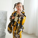 【ニコアンティーク kids 高級変わり織 子供浴衣3点セット 女の子 黄色と墨色の立沸とレトロ花】 個性派きものブランドNicoAntiqueの新作 こども浴衣セット ( ゆかた・帯・下駄 ) 3歳 4歳 5歳 6歳 7歳 8歳 9歳 10歳 レトロ キッズ 国産生地 国内染色