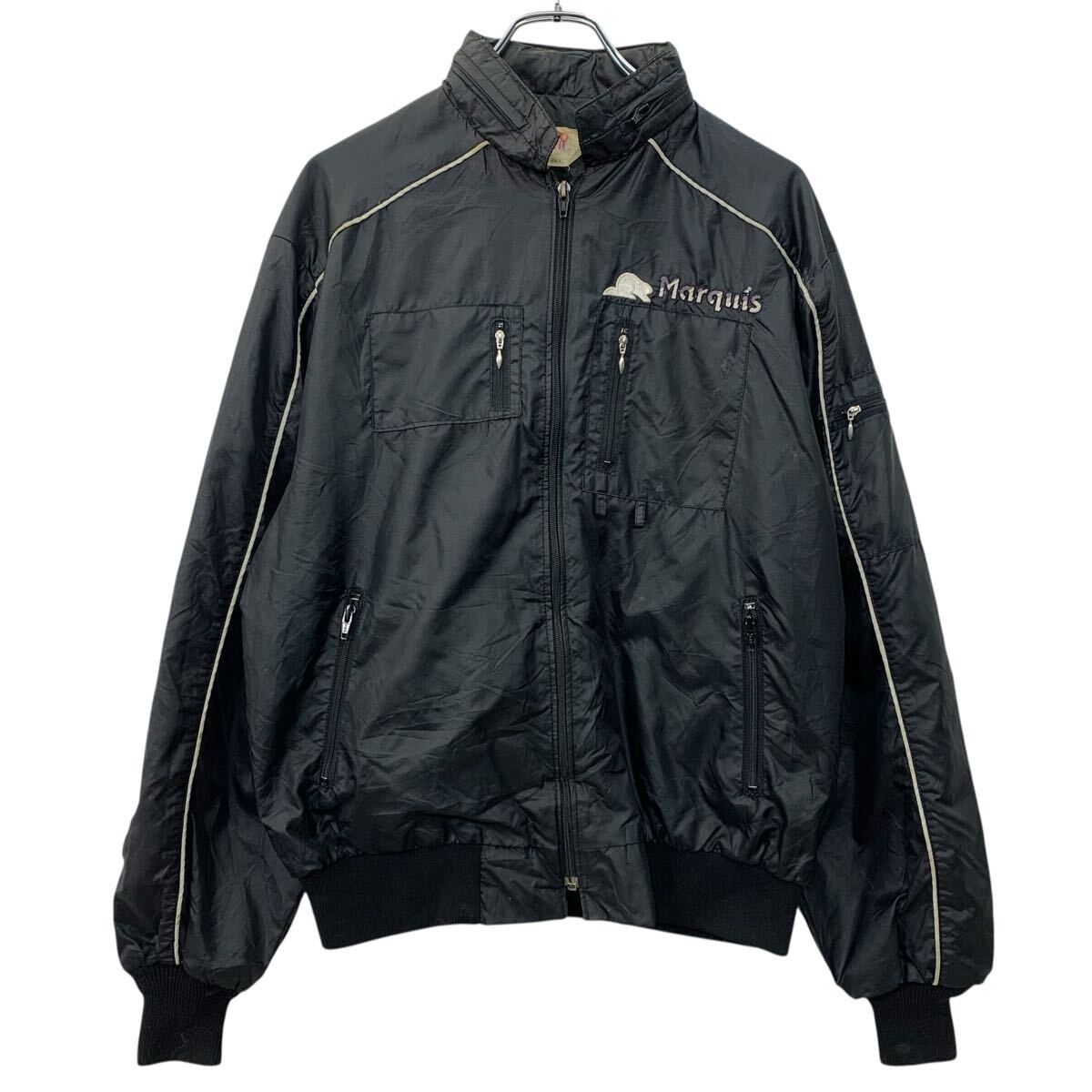 【中古】【古着】 USA製 KingLouie ナイロンジャケット L ブラック ホワイト ジップアップ 刺繍ロゴ ナイロン 無地ジャケット 薄手 春物 a711-5376