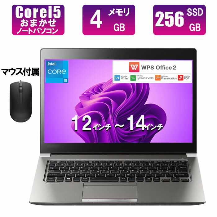 \★最大2555円OFFクーポン★/ノートパソコン おまかせ パソコン Core i5 12インチ~14インチ 新品SSD 256GB メモリ 4GB 富士通 東芝 安いパソコン Windows11 USB3.0 WIFI Office付き 中古ノートpc 中古pc 有線マウス付属