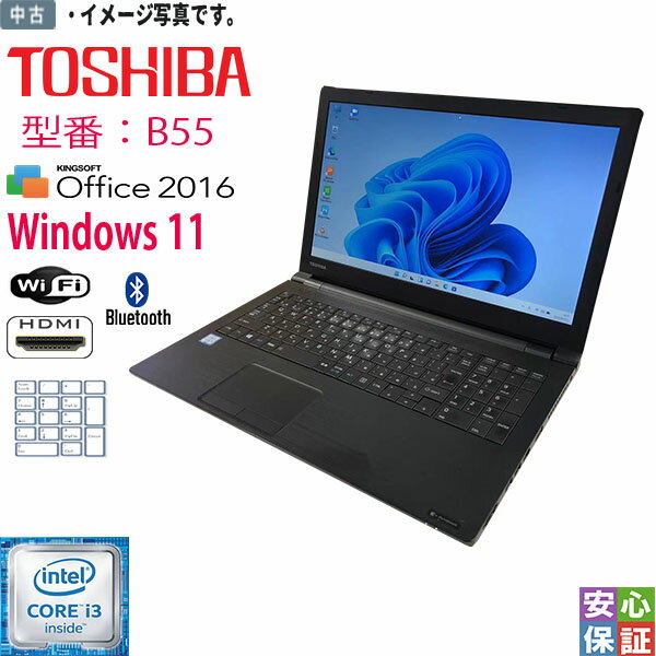 【中古】送料無料 中古パソコン Windows 11 15.6型 TOSHIBA dynabook B55 Intel Core i3 6100U メモリ8GB SSD128GB マルチ 無線 HDMI対応 Kingsoft Office 中古ノートパソコン ノートPC