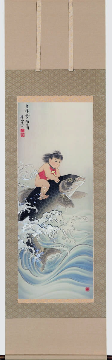 【偕拓堂アートより直送】この商品は偕拓堂アートより発送いたします。偕拓堂から発送する商品は同梱でお届けできます。偕拓堂以外の出荷元から発送する商品は別送料になります。送料は自動計算できない場合がございますので、後ほど、訂正してお知らせいたします。柴田 瑞山作の「吉祥 金太郎之図」です。「鉞(まさかり)担いだ金太郎」と口ずさんでしまいそうな絵柄です。金太郎が勢いよく泳ぐ鯉にまたがっている勇ましい姿が男の子の節句(端午の節句)では健やかに元気に育って欲しい。勇ましい姿が立身出世、家運隆盛につながり毎年お祝いをする席には欠かせない逸品です。柴田 瑞山昭和三十三年生得意:花鳥・山水・人物美術年鑑掲載桐箱収納◆寸法 尺五立標準寸法/54.5×190cm【お届けにつきまして】偕拓堂アートに在庫がある場合は、約5営業日以内に発送いたします。偕拓堂アートに在庫がない場合は、制作に約1ヶ月ほどのお日にちを頂戴いたします。ご注文確定後に、偕拓堂アートに在庫を確認いたしまして、お届けの時期をお知らせいたしますので、必ず、店舗からお送りするメールをご確認ください。柴田 瑞山吉祥 金太郎之図