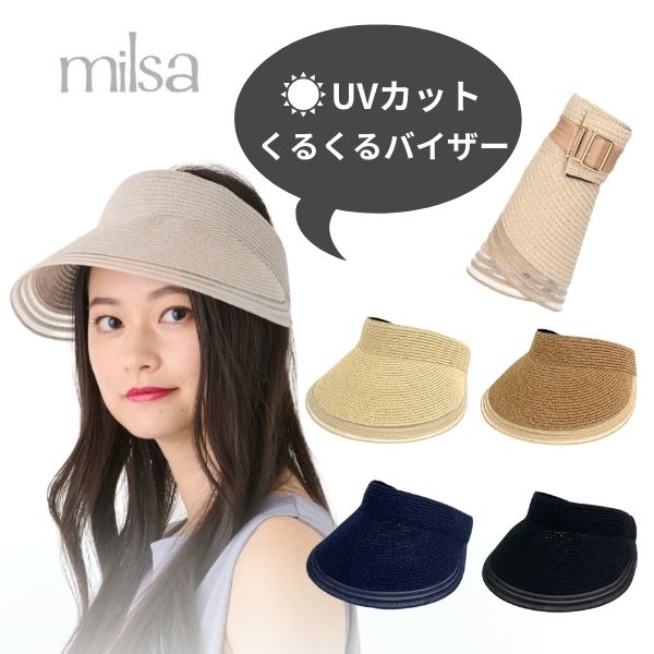 ≪SALE≫kireina 洗濯機で洗える くるくるサンバイザー[UVカット]UV加工 サンバイザー バイザー あご紐付き 折りたたみ ポケッタブル 紫外線対策 日よけ レディース 女性 婦人 母の日 お母さん 春夏 milsa ミルサ 126-361219 帽子 メール便送料無料 セール SALE