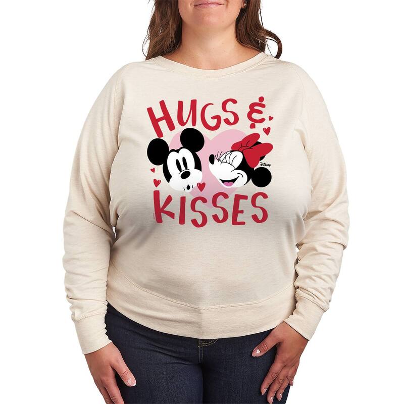 ディズニー レディース トップス Tシャツ プラスサイズ パイル スウェット Disney's Mickey & Minnie Mouse Plusize Hugs & Kisses Lightweight French Terry Sweatshirt Beige ベージュ