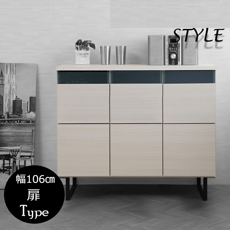 【WHISH】スクエアモダンキャビネット 幅106扉タイプ モノトーン ホワイト リビングボード スクエアキャビネット カウンター 棚 ガラス ブラック 木目 脚付き 収納キャビネット キッチン 収納棚 おしゃれ 台所 白 扉付き 隠せる TVボード テレビボード テレビ台