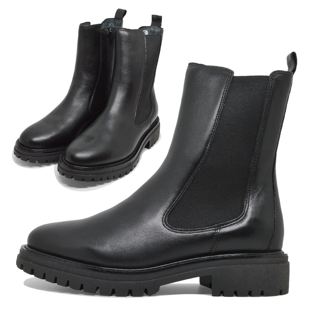 クロンダイク KLONDIKE レディース ブーツ 厚底 本革 ボリュームソールサイドゴアブーツ 40516 (ブラック)