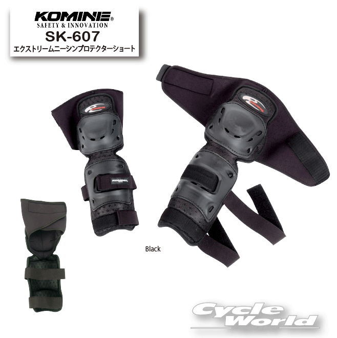 ◆SK-607 エクストリームニーシンプロテクターショート◆人気のコミネプロテクターブランド「エクストリーム」シリーズの新作ニーシンガードです。旧タイプよりも脛部分のモールドをハーフタイプに改良する事で、オフロードブーツを始めとするブーツ類の着用が今まで以上に容易になりました。ブーツを使用する場合のプロテクション性能は変わりません。大型エアプレンバンドが腿を適度に圧迫し、サポーター的な機能も果たします。■Order No.:04-607■Size:Free■Color:Black■Materials:合成樹脂(synthetic plastics)、ウレタンフォーム(urethane foam)-----------------------------------------------------------------------------------------------------※ブラウザやお使いのモニター環境により、掲載画像と実際の商品の色味が若干異なる場合があります。商品詳細画像は今シーズン展開外カラーを掲載していることがあります。掲載の価格・デザイン・仕様について、予告なく変更することがあります。あらかじめご了承ください。商品の詳細に関しましてはメーカーサイトをご確認頂ますようお願い致します。★送料・納期などの注意点につきましては必ず弊社会社概要ページの「ショップからの重要なご案内」をお読みいただき注文をお願いいたします。-----------------------------------------------------------------------------------------------------