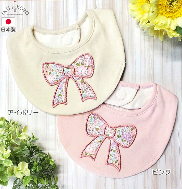 育児工房 IKUJI KOBO 日本製 スタイ リバティ リボン ピンク アイボリー シンプル 無地 おしゃれ かわいい 出産準備 出産祝い ベビーギフト プチプラ ギフト プレゼント ゆうパケット全国送料無料!