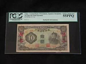 中国満州国中央銀行 10元 ND (1944) 標本 PCGS 通貨 55PPQ