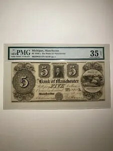 ミシガン州マンチェスター銀行 $5 1830 年代の非常に素晴らしい EPQ
